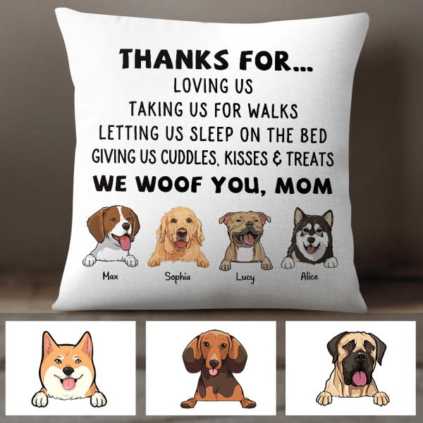 Thanks For Loving Me I Woof You Mom Personalized Dog Pillow P-NB777