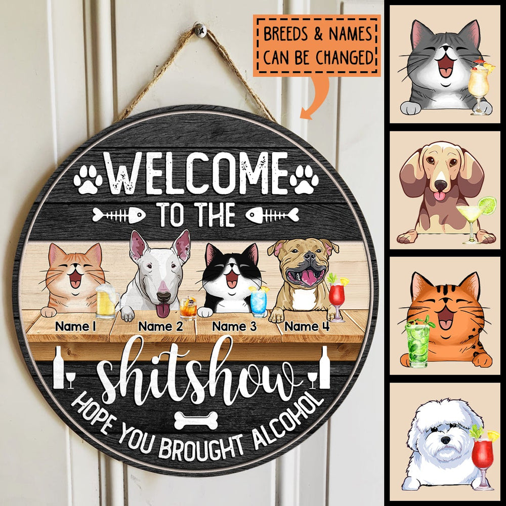 Welcome To The Shitshow Hope You Brought Alcohol - Custom Background V2 - Personalized Dog & Cat Door Sign